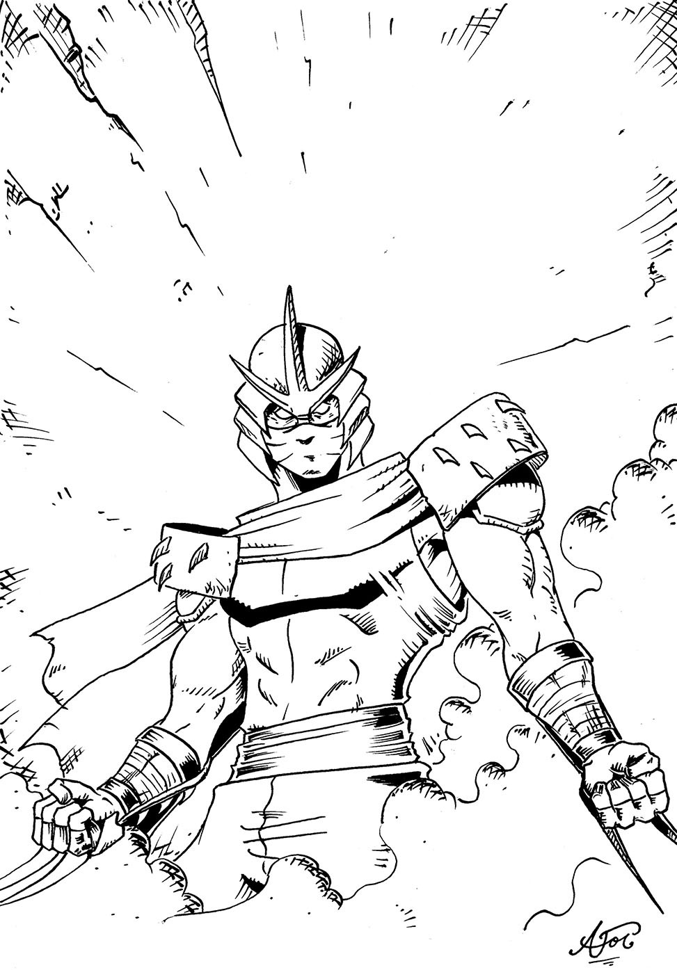 A half body Schredder, one of the principal enemies of the Teenage Mutant Ninja Turtles, inked by hand and scaned in 300 dpi.